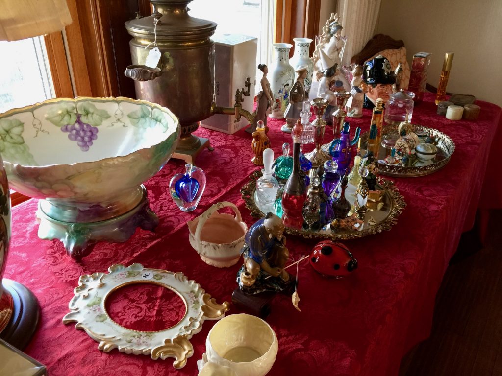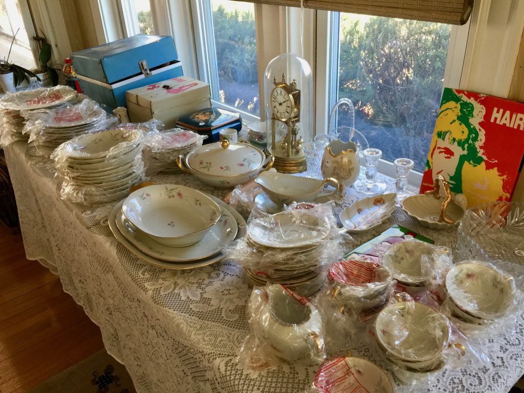 There will be LOTS of gold, silver and costume jewelry, stunning selection of hand painted Limoges including two piece punch bowl, vases and chargers, Waterford Tramore crystal glasses, decanter and other pieces, Lladros, Holmes & Edwards silver-plated flatware set, set of Bavarian Bellaire china,(never used), Sasaki Element china, Droll Design pieces, Villeroy & Boch Naif Christmas ware, Ekco Eterna flatware set, collectibles, household items, kitchenware, lamps, art, bed and table linen, and much more!